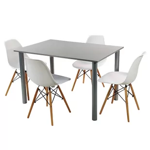 Niezwykle praktyczny zestaw stołowy sprawdzi się w klasycznych oraz nowoczesnych kuchniach lub jadalniach. Prostota wykonania to uniwersalna cecha, dzięki którym zestaw z powodzeniem sprawdzi się w różnych aranżacjach. Cechą wyróżniającą zestawu jest solidne i trwałe wykonanie. Zestaw składa się z prostokątnego stołu i 4 solidnych krzeseł. Stół wykonany jest z metalowych nóg oraz blatu z płyty laminowanej.