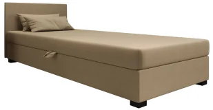 Tapczan z funkcjonalnością i elegancją - dwukolorowy zagłówek nadaje nowoczesny wygląd pojemnik na pościel ukryty pod materacem zapewnia dodatkową przestrzeń do przechowywania materac typu bonell średnio twardy gwarantuje wygodny i zdrowy sen unoszony na automatach materac ułatwia dostęp do schowka uniwersalna konstrukcja pozwala na montaż tapczanu po prawej lub lewej stronie Komfortowa jakość snu z tapczanem Mocna tkanina tapicerska typu plecionka - materiał ten wykazuje wysoką odporność na działanie światła oraz zabrudzenia, co zapewnia doskonały wygląd mebla przez długi czas. Tkanina posiada również bardzo wysoką odporność na ścieranie, potwierdzoną wynikiem powyżej 100 000 cykli w teście Martindale, jest przyjemna w dotyku i szybkoschnąca. Materac bonellowy - zapewnia komfort oraz odpowiednie podparcie pleców i kręgosłupa. Wymiary: Wymiary całkowite: długość 198 cm, szerokość 80/90/100/110/120 cm w zależności od wybranego rozmiaru wysokość spania 38-41 cm wysokość całkowita 73 cm maksymalne obciążenie 100 kg nogi: