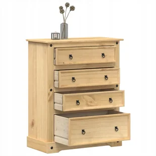 Dzięki ponadczasowemu wzornictwu ta drewniana komoda będzie doskonałym dodatkiem do Twojego domu. Lite drewno sosnowe: Lite drewno sosnowe to piękny, naturalny materiał. Drewno sosnowe ma proste usłojenie, a sęki nadają mu typowy, rustykalny wygląd. Wykonana z litego drewna sosnowego komoda jest trwała i solidna.
