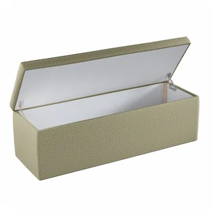 Skrzynia obita została puszystą włókniną (owatą), a wieko grubą gąbką. Otwieranie skrzyni ułatwiają wygodne, samoblokujące się zawiasy, służące także zapewnieniu bezpieczeństwa poprzez zapobieganie nagłemu opadnięciu wieka. Skrzynia tapicerowana dostępna jest w dwóch rozmiarach: 90 x 40 x 40 cm lub 120 x 40 x 40 cm.