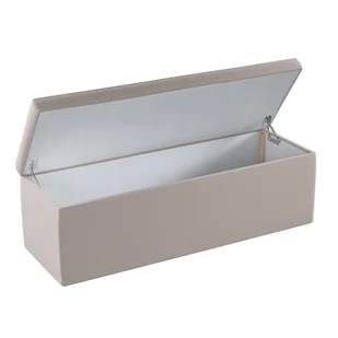 Skrzynia obita została puszystą włókniną (owatą), a wieko grubą gąbką. Otwieranie skrzyni ułatwiają wygodne, samoblokujące się zawiasy, służące także zapewnieniu bezpieczeństwa poprzez zapobieganie nagłemu opadnięciu wieka. Skrzynia tapicerowana dostępna jest w dwóch rozmiarach: 90 x 40 x 40 cm lub 120 x 40 x 40 cm.