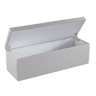 Skrzynia obita została puszystą włókniną (owatą), a wieko grubą gąbką. Otwieranie skrzyni ułatwiają wygodne, samoblokujące się zawiasy, służące także zapewnieniu bezpieczeństwa poprzez zapobieganie nagłemu opadnięciu wieka. Skrzynia tapicerowana dostępna jest w dwóch rozmiarach: 90 x 40 x 40 cm lub 120 x 40 x 40 cm.