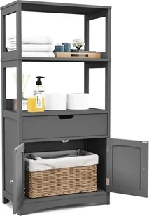 Wielofunkcyjna konstrukcja do użytku m. in. w łazience, sypialni, salonie i kuchniProsty montaż dzięki szczegółowej i nieskomplikowanej instrukcjiDane techniczne: Kolor: szaryMateriał: MDFWymiary produktu: 61 x 33 x 122 cmWymiary wewnętrzne szuflady: