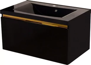 Czarny połysk szafka łazienkowa wisząca z umywalką o szerokosci 80 cm Diamond Gold. Szafka z umywalką czarny połysk. Czarne meble łazienkowe ze złotym uchwytem.