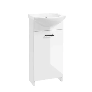Defra Zestaw szafka 1-drzwiowa z umywalką Twins 40 cm biały połysk Zestaw składający się z szafki i umywalki to niezwykle praktyczne rozwiązanie. Jest nie tylko funkcjonalny i wygodny ale i nowocześnie, gustownie się prezentuje. Wygodny i praktyczny Kupno gotowego zestawu umywalki i szafki zaoszczędzi Ci czasu i kłopotu związanego z samodzielnym dopasowaniem osobno kupowanych elementów Umywalka ceramiczna posiada otwór na baterię. Szafka jednodrzwiowa świetnie sprawdzi się do przechowywania łazienkowych akcesoriów i kosmetyków. Drzwiczki szafki możesz zamontować tak aby otwierały się na lewą lub prawą stronę w zależności od Twoich potrzeb i rozkładu Twojej łazienki.
