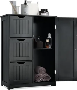 Nadaje się do użytku w różnych pomieszczeniach, takich jak łazienka, salon czy gabinet. 2 przestronne przegrody i 3 szuflady dla maksymalnych możliwości przechowywania Gładka, wodoodporna powierzchnia ułatwia czyszczenie i konserwację Mechanizm zapobiegający przechylaniu zapewnia bezpieczeństwo Tobie i Twojej rodzinie Szczegółowe instrukcje ułatwiające montaż Wysokiej jakości drewno zapewnia dużą nośnośćSzczegółowe informacje o produkcie: Kolor: czarny/szary/biały Materiał: MDF Rozmiar: 60 x 30 x 81 cm (dł. x szer. x wys.) Obciążenie blatu: