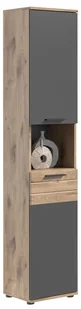 Wysoka szafka łazienkowa Mason 2 drzwi, 1 półka w kolorze szarym, dekor dębu. Odwracalne drzwi. Miękkie zamykanie. Ten produkt został wykonany z wielką dbałością o szczegóły, zapewniając zarówno estetykę, jak i wysoką trwałość. Został zaprojektowany z myślą zarówno o funkcjonalności, jak i stylu, dzięki czemu jest idealnym wyborem do każdego pomieszczenia w domu.