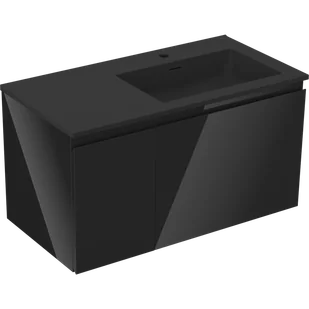 Mexen Orio szafka łazienkowa 90 cm z umywalką Otis prawą, 1S, 1D, czarna połysk/czarna mat - 91A13-09047-3-BBFF70-W18P71