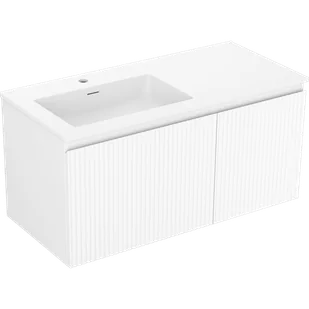 Mexen Rivel szafka łazienkowa 100 cm z umywalką Otis lewą, 1S, 1D, ryflowana, biała mat - 91A23-10047-3-BBFF01-W18L01