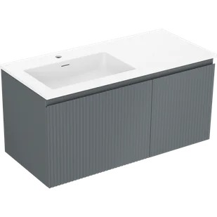 Mexen Rivel szafka łazienkowa 100 cm z umywalką Otis lewą, 1S, 1D, ryflowana, grafit mat/biała mat - 91A23-10047-3-BBFF66-W18L01