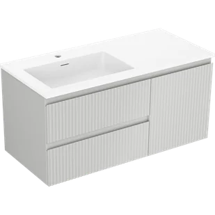 Mexen Rivel szafka łazienkowa 100 cm z umywalką Otis lewą, 2S, 1D, ryflowana, szara mat/biała mat - 91A23-10047-3-BBFFF62-W18L01