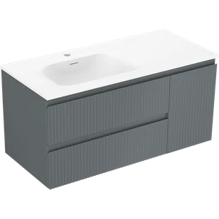 Mexen Rivel szafka łazienkowa 100 cm z umywalką Vela lewą, 2S, 1D, ryflowana, grafit/biała mat 91A23100473BBFFF66W23L01