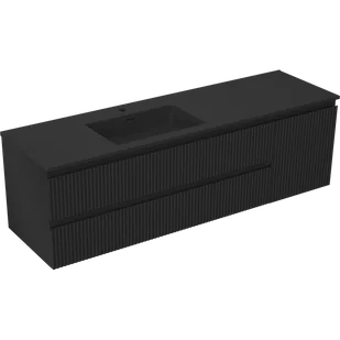 Mexen Rivel szafka łazienkowa 160 cm z umywalką Otis lewą, 2S, 1D, ryflowana, czarna mat 91A23160473BBFFF71W18L71