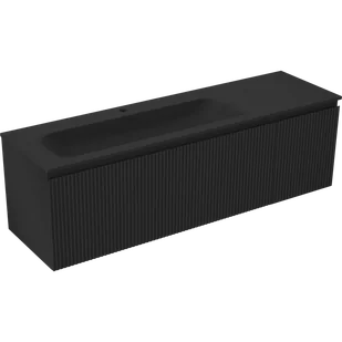 Mexen Rivel szafka łazienkowa 160 cm z umywalką Vela lewą, 1S, 1D, ryflowana, czarna mat - 91A23-16047-3-BBFF71-W23L71