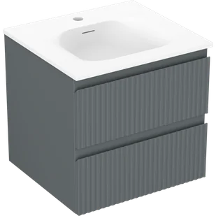 Mexen Rivel szafka łazienkowa 50 cm z umywalką Vela, 2 szuflady, ryflowana , grafit mat/biała mat - 91A20-05047-2-BFF66-W23M01