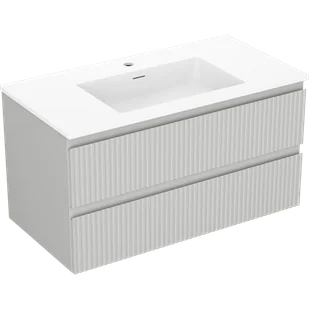 Mexen Rivel szafka łazienkowa 90 cm z umywalką Otis, 2 szuflady, ryflowana , szara mat/biała mat - 91A20-09047-2-BFF62-W18M01