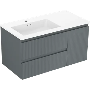 Mexen Rivel szafka łazienkowa 90 cm z umywalką Otis lewą, 2S, 1D, ryflowana, grafit mat/biała mat - 91A23-09047-3-BBFFF66-W18L01
