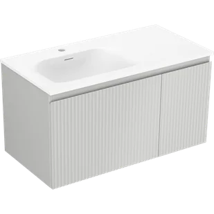 Mexen Rivel szafka łazienkowa 90 cm z umywalką Vela lewą, 1S, 1D, ryflowana, szara mat/biała mat - 91A23-09047-3-BBFF62-W23L01