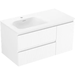 Mexen Rivel szafka łazienkowa 90 cm z umywalką Vela lewą, 2S, 1D, ryflowana, biała mat - 91A23-09047-3-BBFFF01-W23L01