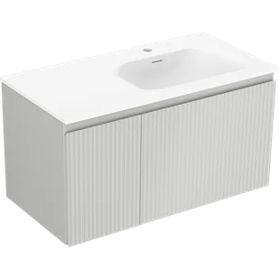 Mexen Rivel szafka łazienkowa 90 cm z umywalką Vela prawą, 1S, 1D, ryflowana, szara mat/biała mat - 91A23-09047-3-BBFF62-W23P01