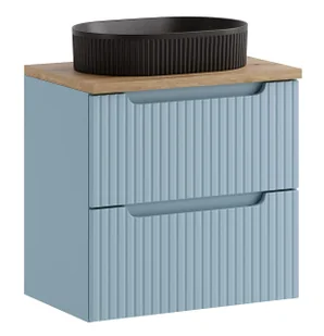 Kompaktowa, zawieszana bryła z dwiema pojemnymi szufladami zapewnia wygodne przechowywanie, a blat z dekoru drewna w połączeniu z nablatową umywalką tworzy efektowną, designerską całość. Pionowe ryflowania frontów oraz subtelnie zintegrowane podchwyty podkreślają nowoczesny charakter mebla, jednocześnie zachowując spójność z pozostałymi elementami kolekcji . Zalety modelu : Kompletna szafka łazienkowa z umywalką nablatową. Dwie pojemne szuflady ułatwiające organizację przestrzeni.