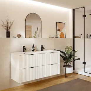 Szukasz eleganckiego akcentu do łazienki? Postaw na szafkę łazienkową ZEVINI! Jej teksturowane fronty wniosą do każdego wnętrza odrobinę minimalistycznego wyrafinowania, a ponadczasowy odcień bieli z łatwością wpasuje się w dowolne wnętrze. Obszerne szuflady z systemem cichego domykania to najwygodniejszy wybór do codziennego użytkowania!