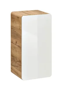 Stwarza wyrafinowaną kompozycję nadając wnętrzom szczyptę luksusowego charakteru. Podwieszana szafka łazienkowa to kolejna propozycja z kolekcji . Charakteryzuje się niewielkimi rozmiarami, wysoką funkcjonalnością oraz delikatną formą, która nie przytłacza wnętrza. Ten niewielki półsłupek za gładką taflą białego frontu skrywa dwie przestronne półki pozwalające na swobodne przechowywanie różnego rodzaju przedmiotów. Korpus mebla w kolorze złotego dębu craft wieńczy blat na którym bez problemu ustawić możesz ozdobne elementy stwarzające we wnętrzu przyjazną atmosferę.
