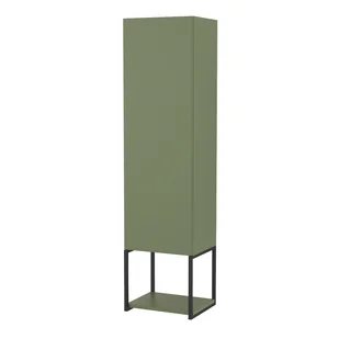 Słupek łazienkowy krofam lov 130x33x28 cm szaro zielony mat 137-0101 to model, który doskonale sprawdzi się w łazienkach w stylu nowoczesnym, skandynawskim, loft, boho oraz eklektycznym. Prezentowany słupek łazienkowy w naturalnym i zgaszonym odcieniu zieleni, który zapewnia harmonię oraz koi zmysły, kontrastuje z czarnymi rantami. Model z dodatkową półką, która pozwala wyeksponować dekoracje lub przechowywać podstawowe akcesoria, został wyposażony w system cichego domknięcia. Wnętrze słupka ła