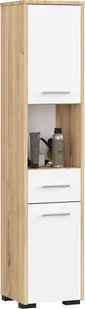 Słupek łazienkowy AKORD FIN Dąb Artisan 30 cm 2 drzwi 1 szuflada kolor Biały mat 5 półek 30x30x140 cm