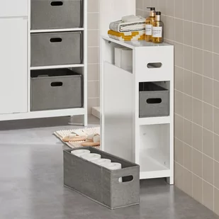 Komoda na pranie (BZR77-W) i szafka na papier (BZR83-W). Specyfikacja: Waga: ok. 12 kg Materiał: MDF(E1); sosna, kosz wykonany z polaru Nośność: do 15 kg Wymiary produktu: