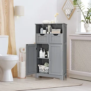 DUŻO MIEJSCA DO PRZECHOWYWANIA - Dzięki otwartej komorze, 2 szufladom i 1 dużej sekcji szafki, ta komoda łazienkowa oferuje mnóstwo miejsca do przechowywania różnych przedmiotów - wreszcie koniec z chaosem w łazience!ELASTYCZNE PRZECHOWYWANIE - Szuflady można umieścić na górnym lub środkowym poziomie szafki, w zależności od potrzeb. Można również elastycznie regulować położenie półki w szafce w 3 stopniach. WSZECHSTRONNE ZASTOSOWANIE - Idealny mebel w łazience, który nie zajmuje zbyt wiele miejsca, oferując jednocześnie dużo miejsca do przechowywania. Dzięki prostemu wyglądowi i dużej funkcjonalności idealnie nadaje się również jako szafka do przedpokoju, szafka kuchenna, szafka biurowa itp. Opis produktu: