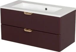 Szafka łazienkowa burgundowa 80 cm MAGNOLIA z umywalką Szafka pod umywalkę MGL-BR-U80/39/2 (złote uchwyty) Szafka pod umywalkę 80 cm z kolekcji Magnolia w pięknym, subtelnym kolorze burgundu w matowym wykończeniu. Szafka ma bardzo prostą bryłę, która została przełamana ozdobnym, złotym uchwytem z ażurową jodełką . Jest również dostępna wersja z uchwytami czarnymi. S zuflady wyposażone zostały w prowadnice z systemem cichego domykania , który sprawia, że w ostatniej fazie zamykania zwalniają, aby niemal bezgłośnie się zamknąć. Umywalka dolomitowa KIDDY-800 W komplecie z szafką otrzymasz idealnie dopasowaną do szafki umywalkę KIDDY-800 w białym kolorze , która ma bardzo niski rant - jedynie 2 cm.