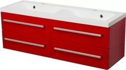 Szafka łazienkowa czerwona 120cm FOKUS z umywalką podwójną FKS-CZ-U120/39/4 + Clever-1200D FALA Nowoczesna, bardzo ekskluzywna szafka łazienkowa w czerwonym kolorze wykonany na wysoki połysk wraz z podwójną, białą dolomitową umywalką z serii FOKUS. Szafka posiada cztery szuflady. Umywalka posiada otwory na baterie. Szafka wyposażona jest w system cichego domykania , który sprawia, że szuflady w ostatniej fazie zamykania zwalniają, aby niemal bezgłośnie się zamknąć. Prezentowana seria FOKUS to nowoczesny design w prostej formie.