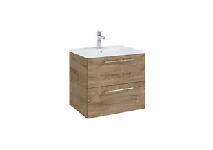 Szafka łazienkowa pod umywalkę roca roma plus 60 cm dąb canela a857949808 to model, który łączy elementy stylu nowoczesnego z rustykalnym. Drewnopodobny mebel w odcieniu brązu perfekcyjnie imituje naturalną strukturę dębu, prezentując na powierzchni charakterystyczne sęki i słoje. Mebel łazienkowy podwieszany wyposażony został w dwie szuflady z chromowanymi uchwytami w komplecie. Wykonany z gładkiej płyty laminowanej, zapewnia łatwość pielęgnacji oraz utrzymania powierzchni w nieskazitelnej cz
