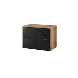 Wisząca szafka łazienkowa pod umywalkę szynaka meble mazi 80 cm wotan/czarny mat th-100-1842 z blatem to elegancki mebel, który dobrze wpasuje się w łazienki o współczesnym wystroju. Wykonana z wysokiej jakości płyty laminowanej, łączy w sobie wysoką odporności na wilgoć i zarysowania oraz nowoczesny design. Delikatne geometryczne wzory na czarnych frontach z ryflowanego mdf-u dodają szafce oryginalności i sprawiają, że idealnie pasuje do łazienek urządzonych w stylu industrialnym czy minimalis