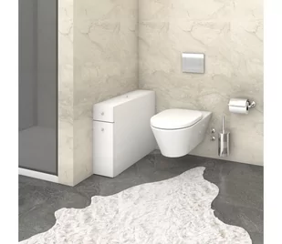 Przestronna szafka łazienkowa. Dzięki prostemu, nowoczesnemu stylowi pasuje do każdego domu. Dwie szuflady i jeden schowek w górnej części szafki. Wykończenie w kolorze białym. Wykonana z laminowanej płyty wiórowej.