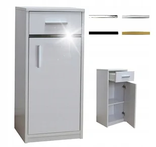 Szafka Łazienkowa stojąca szer. 40cmKod produktu: 814Pojemna szafka o szerokości 40cm. Posiada drzwiczki, za którymi znajdują się dwie pojemne półki oraz szufladę. Dzięki półkom oraz szufladzie szafka jest w stanie pomieścić wiele akcesoriów używanych w łazience. Szafka posiada do wyboru cztery kolory uchwytów: aluminium, chrom, czarny lub złoty. Szafka oklejona obrzeżem PCV podwyższającą odporność na wilgoć. Mebel przeznaczony dla osób, które cenią sobie nowoczesny styl i elegancję. Szafka tak jak na zdjęciu otwiera się na prawą stronę. Doskonale sprawdzi się w każdej łazience.