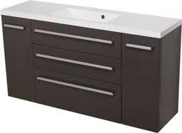 Szafka łazienkowa szara 140cm FOKUS z umywalką FKS-S-U140/39/C3 + Clever-1400C Nowoczesna, bardzo ekskluzywna szafka łazienkowa w grafitowym kolorze wykonana na wysoki połysk wraz z białą, dolomitową umywalką z serii FOKUS. Szafka posiada dwoje drzwiczek i trzy szuflady. Umywalka posiada otwór na baterię. Szafka wyposażona jest w system cichego domykania , który sprawia, że szuflady w ostatniej fazie zamykania zwalniają, aby niemal bezgłośnie się zamknąć. Prezentowana seria FOKUS to nowoczesny design w prostej formie.