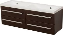 Szafka łazienkowa wenge mat 120cm FOKUS z umywalką podwójną FKS-W-U120/39/4 + Clever-1200D FALA Szafka pod umywalkę FOKUS w kolorze wenge matowym wraz z podwójną, dolomitową umywalką. Szafka wyposażona jest w system cichego domykania , który sprawia, że szuflady w ostatniej fazie zamykania zwalniają, aby niemal bezgłośnie się zamknąć. Prezentowana seria FOKUS to nowoczesny design w prostej formie. Ergonomiczny uchwyt aluminiowy łączy w meblach nowoczesny akcent i klasyczną elegancję. Prostokątny kształt umywalek podkreśla wyraziste wzornictwo mebli.