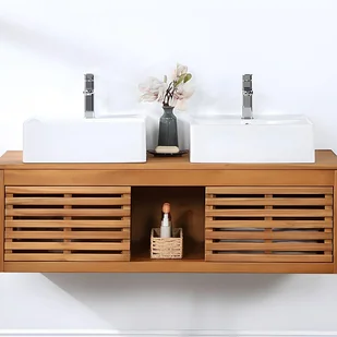 Szukasz szafki, który nada Twojej łazience kojącą atmosferę? Szafka PENEBEL oczaruje Cię swoimi balijskimi inspiracjami. Wykonana jest z drewna akacjowego, szlachetnego materiału, który z łatwością wkomponuje się w wystrój wnętrza. Ażurowe fronty i zwiewny charakter nadają jej lekkości. Szafka ma również dużo miejsca do przechowywania, a dwie wnęki funkcjonalne i dekoracyjne wnęki dodają jej modnego charakteru.