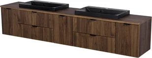Szafka łazienkowa z lamelami wisząca z dwiema czarnymi umywalkami nablatowymi 210 cm 39/2 Victa Lamello kolor orzech