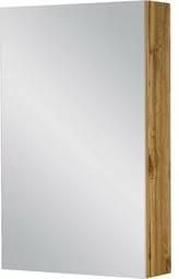 Szafka łazienkowa z lustrem dąb naturalny 50x80 cm FOKUS NEW FKSN-NE-WL50/80 Nowoczesna, bardzo ekskluzywna wisząca szafka łazienkowa z lustrem w kolorze natural eiche (dąb naturalny) z serii FOKUS. Szafka wyposażona jest w system cichego domykania , który sprawia, że drzwiczki w ostatniej fazie zamykania zwalniają, aby niemal bezgłośnie się zamknąć. Prezentowana seria FOKUS to nowoczesny design w prostej formie. Ergonomiczny uchwyt aluminiowy łączy w meblach nowoczesny akcent i klasyczną elegancję. Prostokątny kształt umywalek podkreśla wyraziste wzornictwo mebli.