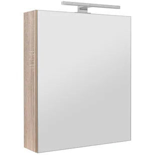 Szafka lustrzana z lampką LED to połączenie niezwykłej elegancji i praktycznej funkcjonalności, tworzące harmonijne i nowoczesne centrum Twojej łazienki. Lampka LED jest przykręcana na górze szafki, dodając dodatkowego oświetlenia i funkcjonalności. Front szafki to jedno wielkie, lśniące lustro, które nadaje Twojej łazience niepowtarzalnego uroku i optycznie powiększa przestrzeń. Boki szafki wykonane są z płyty wiórowej laminowanej w kolorze dąb sonoma, co dodaje wnętrzu ciepłego i stylowego wyglądu.