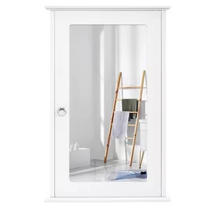 Opis: Ta łazienkowa lustrzana szafka ścienna z białym wykończeniem i pojedynczymi drzwiami łączy w sobie klasyczny i nowoczesny design, aby nadać Twojemu domowi uroczy wygląd. Konstrukcja montowana na ścianie zajmuje niewiele miejsca i może zapewnić dużo miejsca do przechowywania codziennych potrzeb, a także leków. Wytrzymały materiał MDF i wzmocnione śruby zapewniają jeszcze większą stabilność szafki. Ponadto półka wewnątrz komory szafki ma regulowaną wysokość, co pozwala łatwo dostosować ją do rozmiaru przedmiotów, które chcesz przechowywać. Co więcej, duża i przejrzysta powierzchnia lustra nie ulega łatwo zabrudzeniu przez smugi, dzięki czemu można go używać do rutynowej pielęgnacji skóry lub do pięknego makijażu.