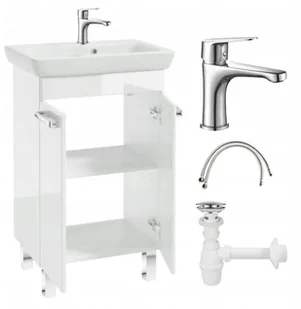 Szafka łazienkowa z umywalką biały połysk stojąca 55x85 Capri z baterią chrom wydłużoną
