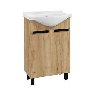 Szafka z umywalką lily to klasyczne połączenie lekkiej formy z maksymalną funkcjonalnością od polskiej marki defra. Fronty i korpus wykonano z płyty o grubości 16 mm w dębowym dekorze, co nadaje bryle nowoczesny i naturalny wygląd. Idealnie wpisuje się w modne aranżacje w stylu skandynawskim, minimalistycznym, loftowym lub japandi. Powierzchnie w odcieniu dębu craft z widocznym rysunkiem słojów wnoszą przytulność, natomiast uchwyty i nóżki w czarnym kolorze dodają wnętrzu charakteru i podkreśla