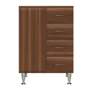 Szafka niska Bianca Plus 60 z 1 drzwiami, 4 szufladami, orzech aida, lewaSzafka niska Bianca Plus 60 stworzy harmonię w Twojej łazience! Mebel łazienkowy zajmuje niewiele miejsca, ale ma przestronny schowek , w którym można wygodnie przechowywać przybory toaletowe. Dzięki niewielkim rozmiaromnadaje się również do mniejszych łazienek, na przykład w mieszkaniach z prefabrykatów. Produkt jest wykonany z wysokiej jakości płyty meblowej i jest dostarczany z dopasowanymi kolorystycznie zamkami krawędziowymi. Produkt dostarczany jest w stanie zmontowanym, dzięki czemu nie trzeba martwić się o montaż. Front mebla jest również pokryty folią próżniową MDF, dzięki czemu jest doskonale wodoodporny.