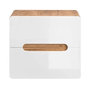 Stwarza wyrafinowaną kompozycję nadając wnętrzom szczyptę luksusowego charakteru. Komponujesz właśnie zestaw mebli do wymarzonej łazienki? Planujesz umywalkę nablatową i rozglądasz się właśnie za szafką, która będzie jednocześnie funkcjonalna i niezwykle designerska? stworzona przez najlepszych specjalistów marki Elior to doskonałe rozwiązanie! Ten stosunkowo niewielki, idealnie dopracowany mebel to perfekcyjne połączenie korpusu w kolorze złotego dębu craft oraz połyskujących, białych frontów. Świetnie wpisuje się w wiele styli aranżacyjnych wprowadzając wizualną lekkość do wnętrza. Niewielka, podwieszana forma sprawia, że nadaje aranżacji niepowtarzalnego charakteru nie przytłaczając wnętrza. Mebel posiada dwie pojemne szuflady, które zapewniają niezwykły komfort w porządkowaniu przechowywanych przedmiotów - nie będziesz musiał już schylać się w poszukiwaniu czegoś, co ukryło się gdzieś na dolnej półce za innymi przedmiotami - tak jak ma to miejsce w przypadku szafek z półkami.