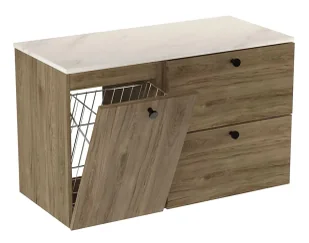 Dodatkowo dwie szuflady z systemem cichego domykania oferują wygodne miejsce na kosmetyki, akcesoria i inne drobiazgi. Ten model to połączenie funkcjonalności, estetyki i porządku w jednym, eleganckim meblu. Zalety szafki pod umywalkę Tavesi 8X: Wbudowany, uchylny kosz na pranie – praktyczny i dyskretny. Dwie pojemne szuflady z funkcją cichego domykania.