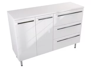 Szafka Stojąca Z Blatem ATH 120 cm DS Prawa - Biały Wysoki Połysk - Uchwyty Chromowane